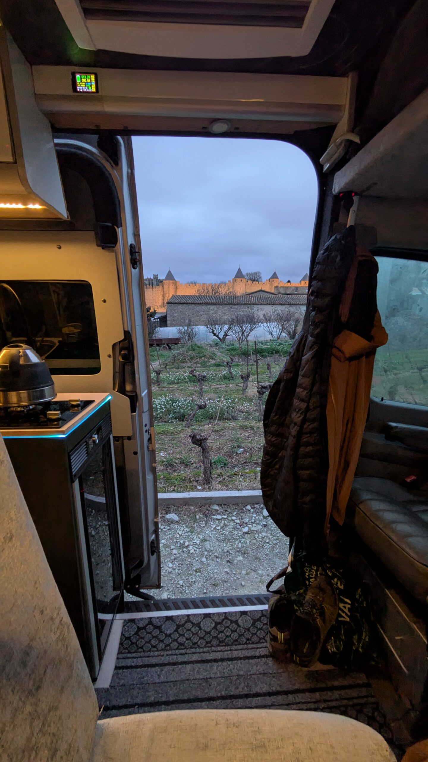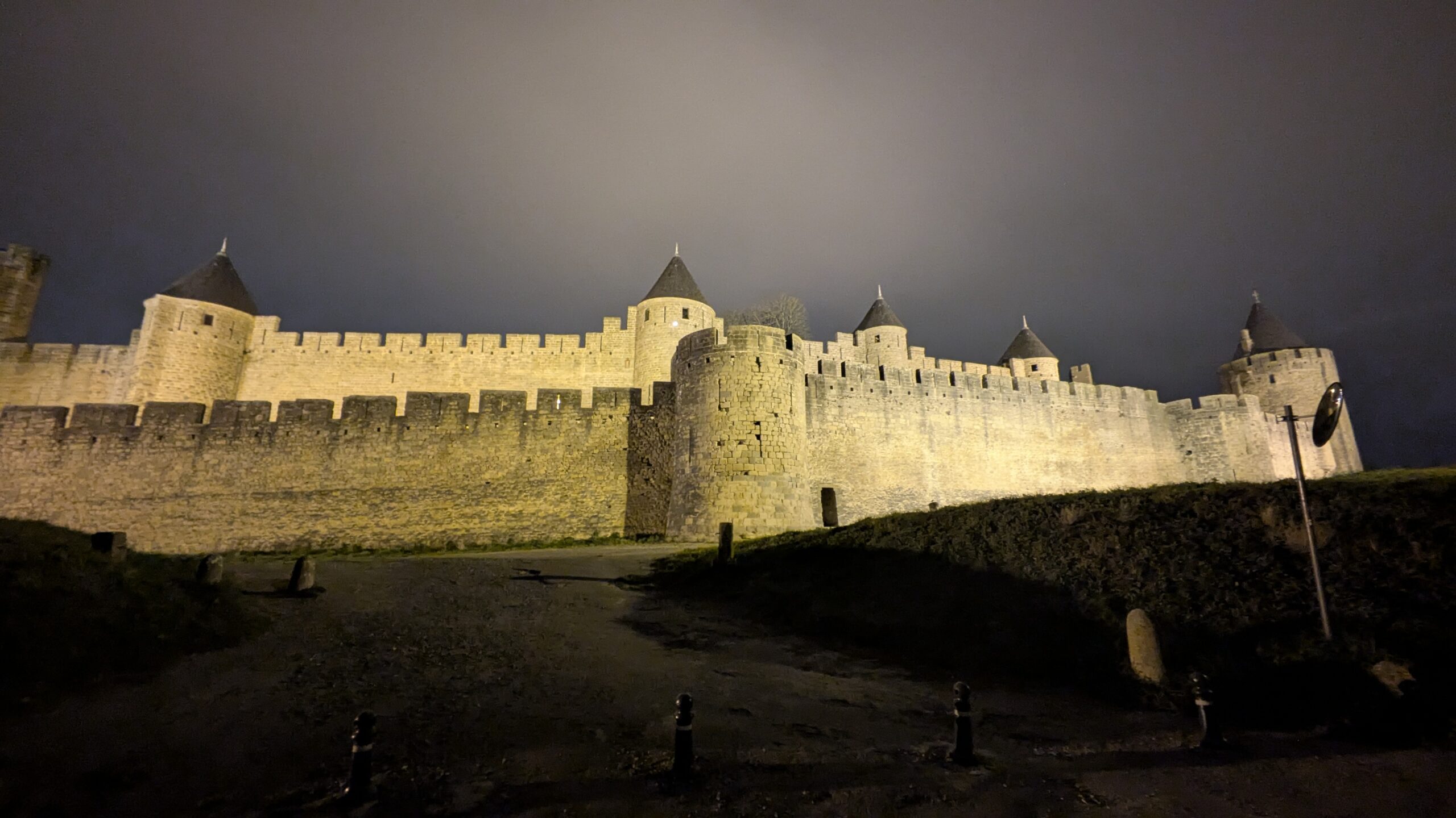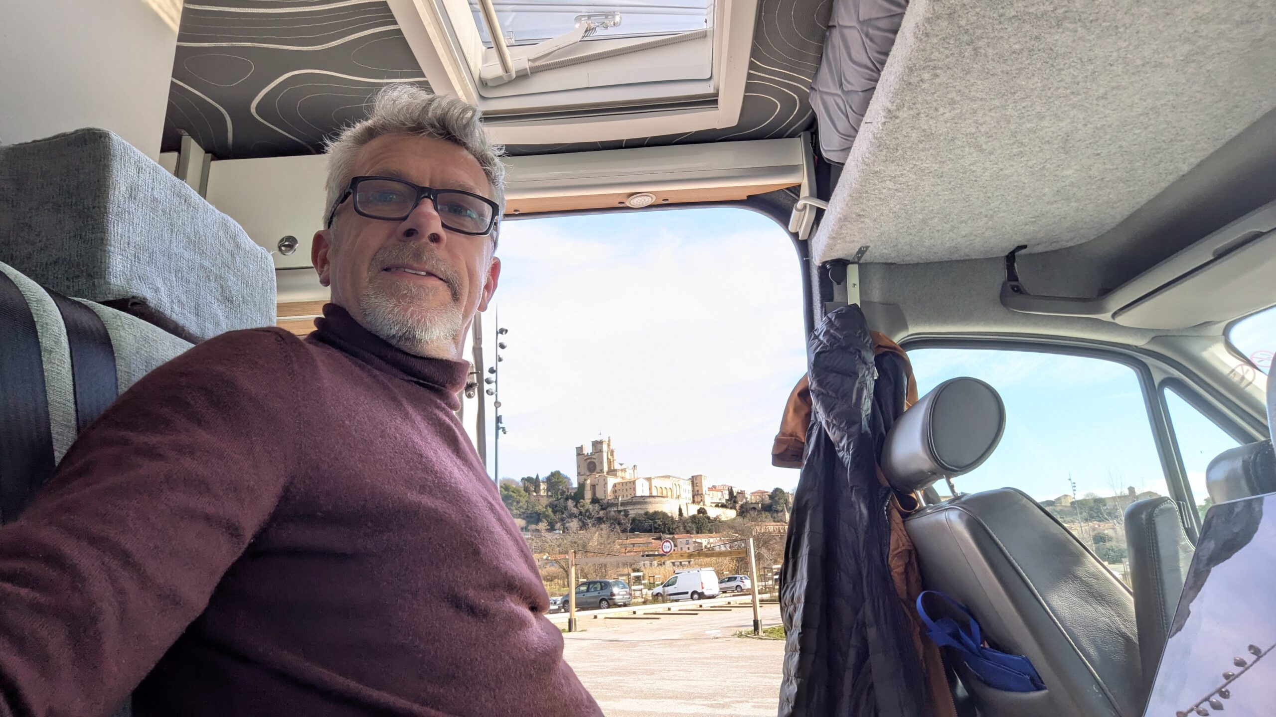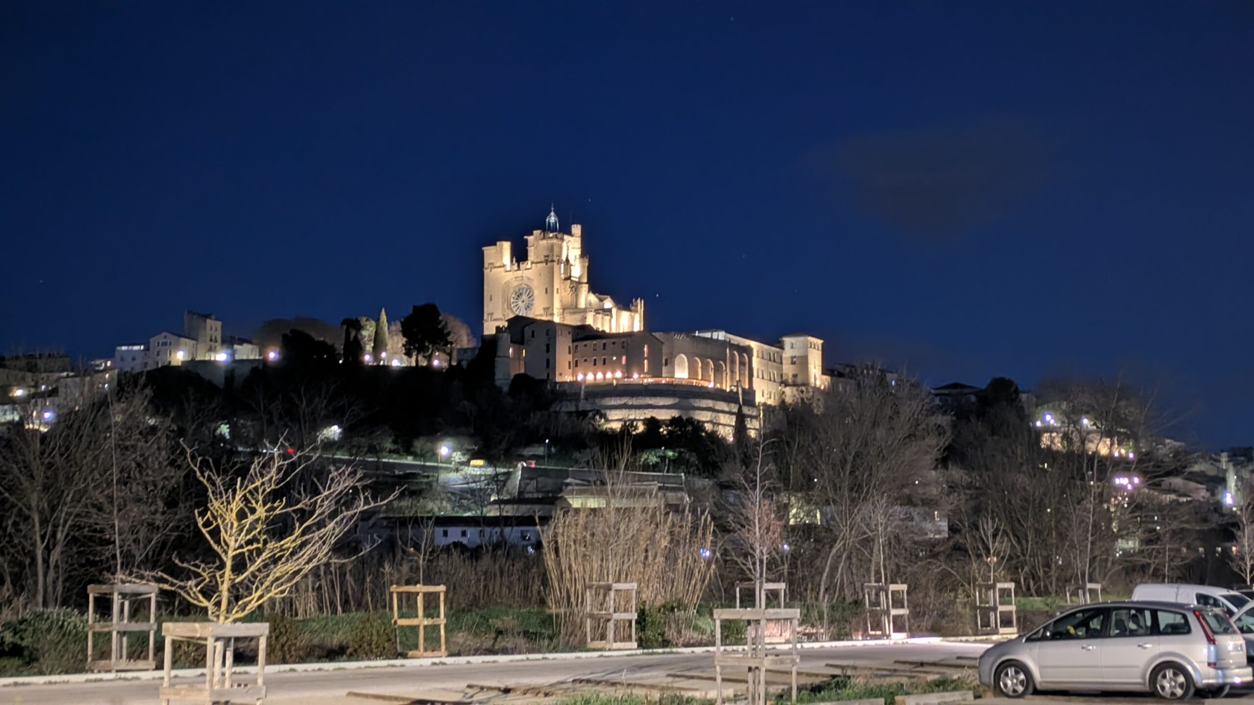 Wow! What a great place! Bezier. I've not been here before. Found an ideal camper van park-up for the day with a sign saying no camping after 1:00 a.m. so knew I had plenty of time to stroll up the steep steps to the old town and then through into the main part of the city. Came back to the van for some lunch and to do some work in the afternoon before another stroll up after dark admiring the flood lighting. Moving on I found a car park that still had a view of the floodlit castle for my quiet night.