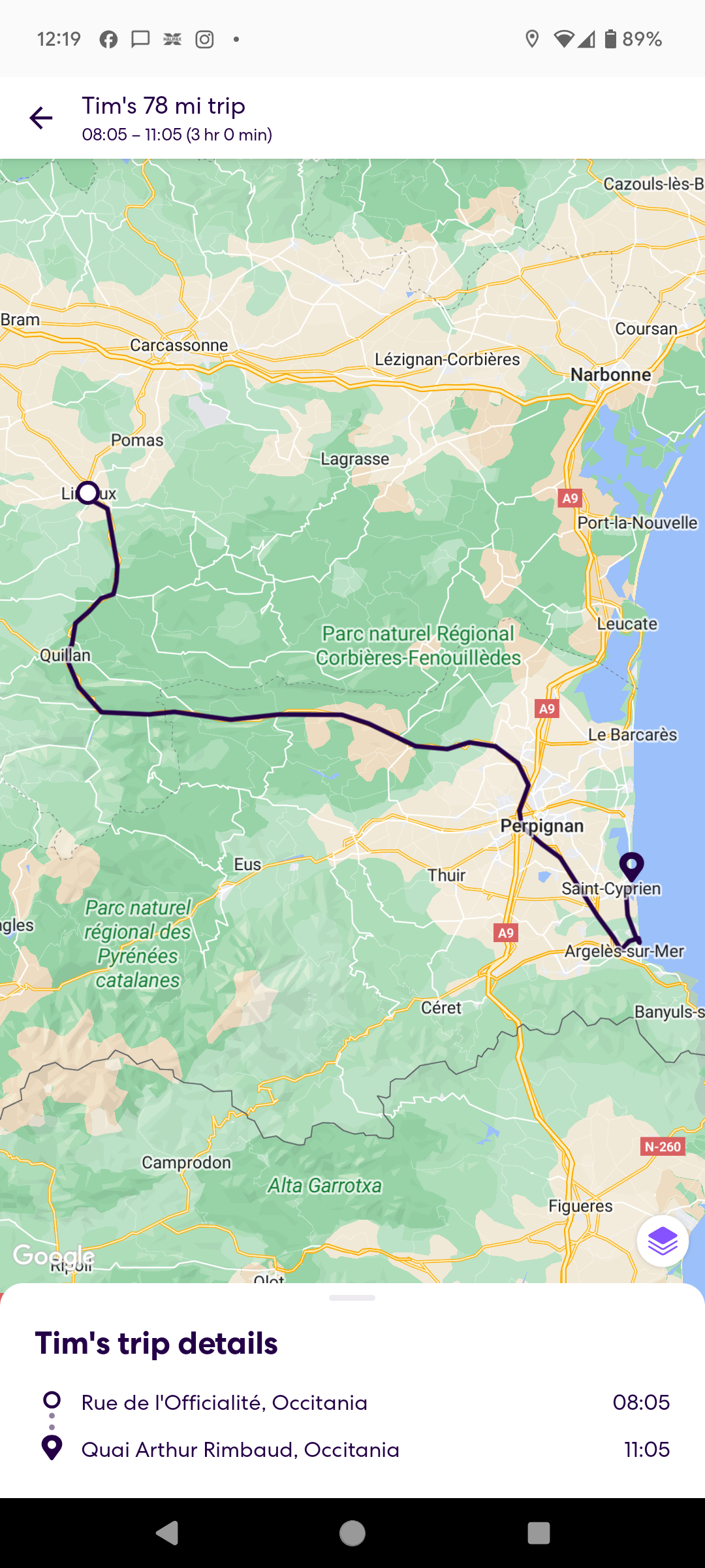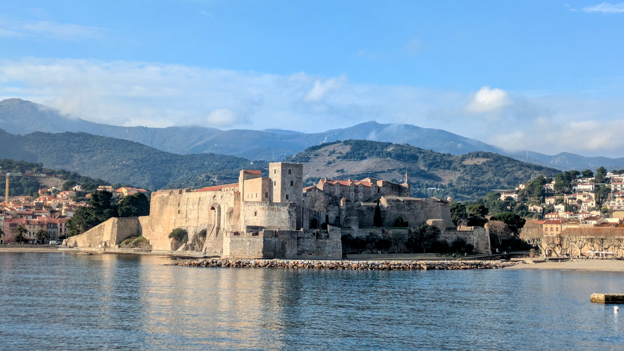 Risking some fairly tricky parking after finding out that it was market day. It was a nice early stroll down towards the square where the market was on, pausing briefly to buy a croissant from what seemed to be the only boulanger in town. I then sat and had a coffee on the beachfront of the beautiful little harbour in the sunshine as the temperature warmed. A stroll out to the end of the harbour wall followed and then meander through the rest of the town returning to the market to buy some goodies for birthday presents and treats to take home. Such a lovely little town. It would be great to return for a holiday. As you can imagine, the Pyrenees in the distance would keep the air cool, even mid-summer.