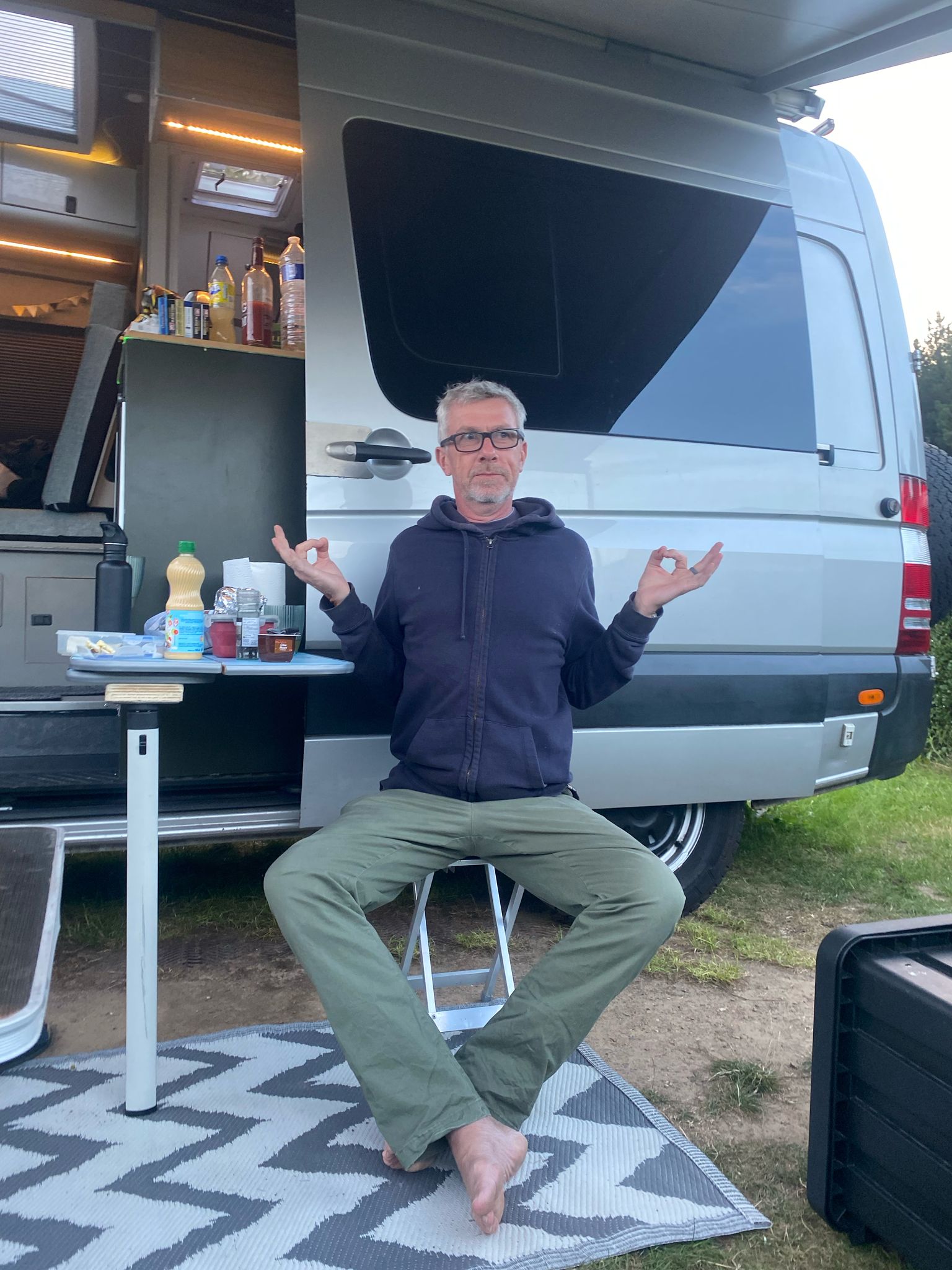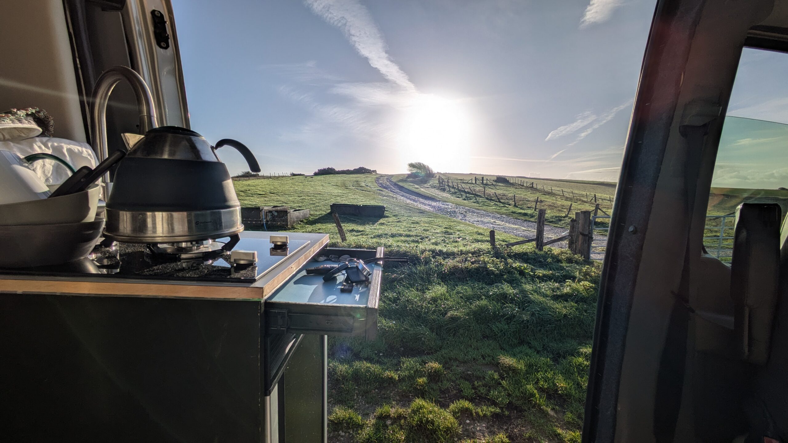 - Parked up with a simple view – a field, a hill line, maybe a sunset if I’m lucky